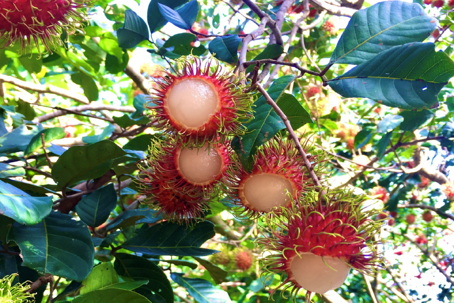 Chúng tôi đã hợp tác được chính thức với 16 vườn với 8 loại trái cây khác nhau: Sầu riêng, chôm chôm, măng cụt, xoài, ổi, nhãn, bưởi, bơ…